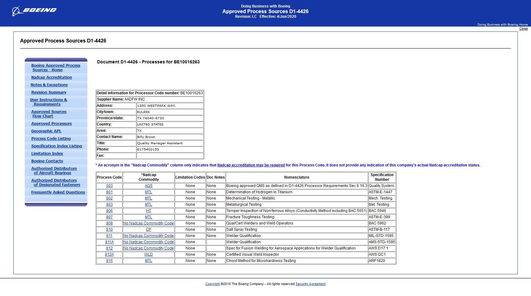 AADFW is independently audited and approved to the industry’s highest standards, holding Nadcap by PRI approvals for Non-Destructive Testing and Mechanical Testing, as well as A2LA Accreditation #0603.01. These credentials validate our processes, personnel, and equipment—ensuring traceable results, consistent quality, and compliance for critical aerospace and energy programs. Certificates are available for viewing, click below.